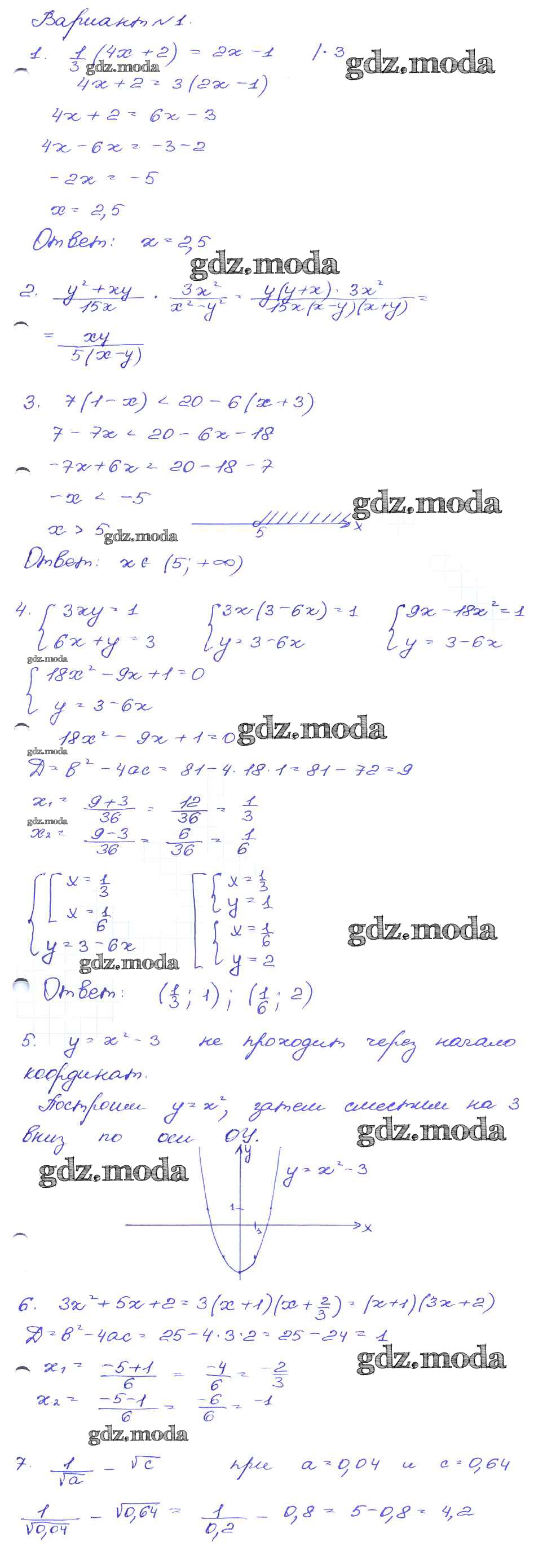 ГДЗ решение к заданию № Вариант-1 Алгебра 9 класс сборник заданий Кузнецова Л.В. Дрофа 2008 ФГОС бесплатно на гдз.мода!