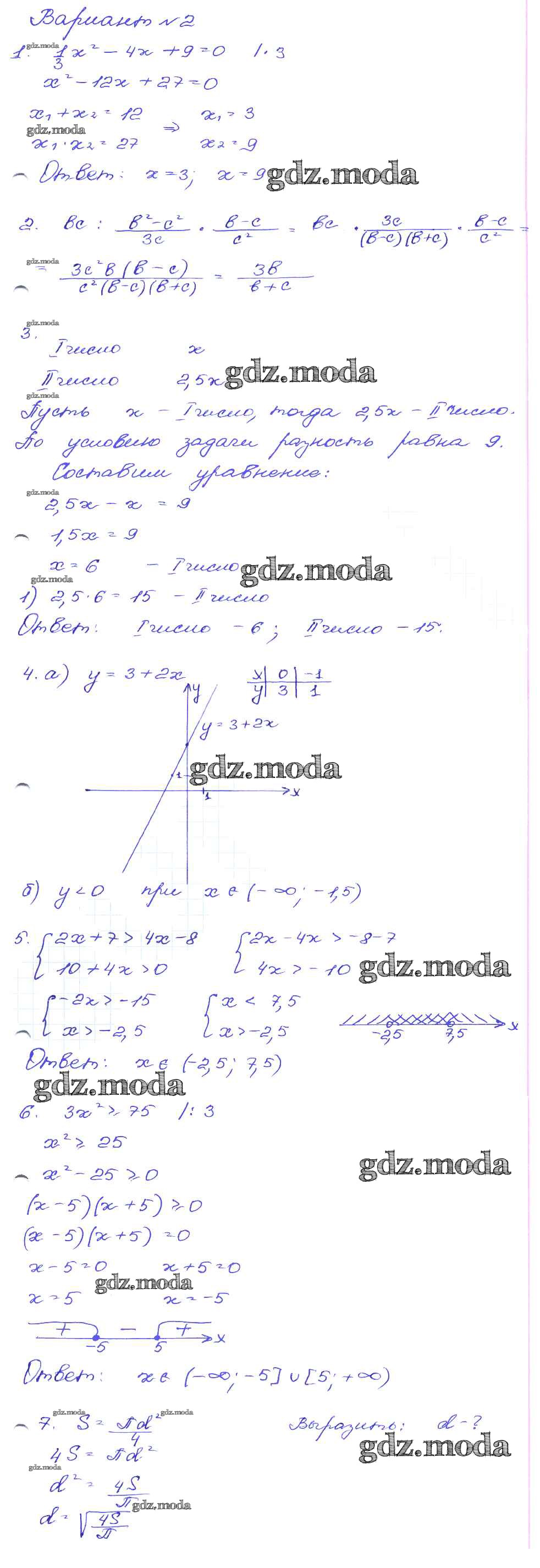 ОТВЕТ на задание № Вариант-2 Сборник заданий по Алгебре 9 класс Кузнецова