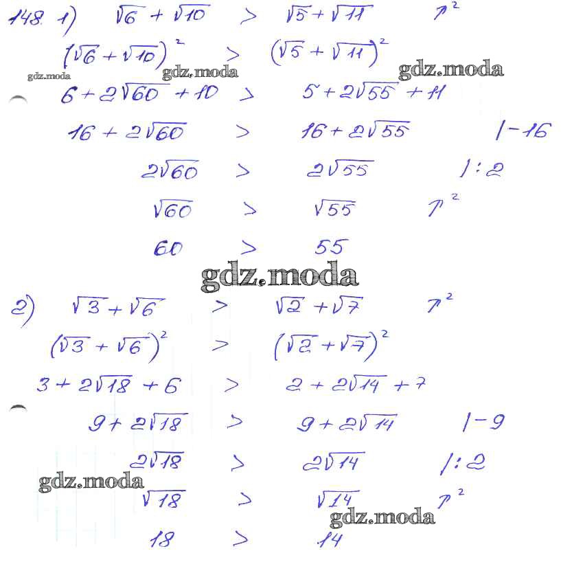 ОТВЕТ на задание № 148 Сборник заданий по Алгебре 9 класс Кузнецова