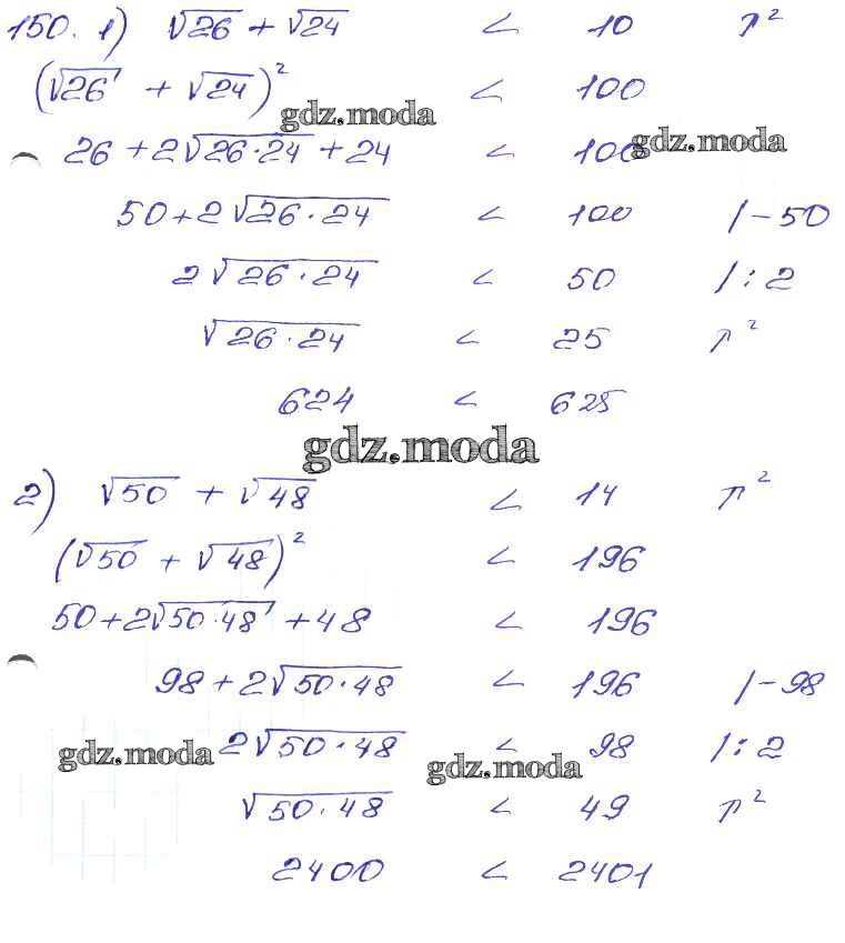 ОТВЕТ на задание № 150 Сборник заданий по Алгебре 9 класс Кузнецова
