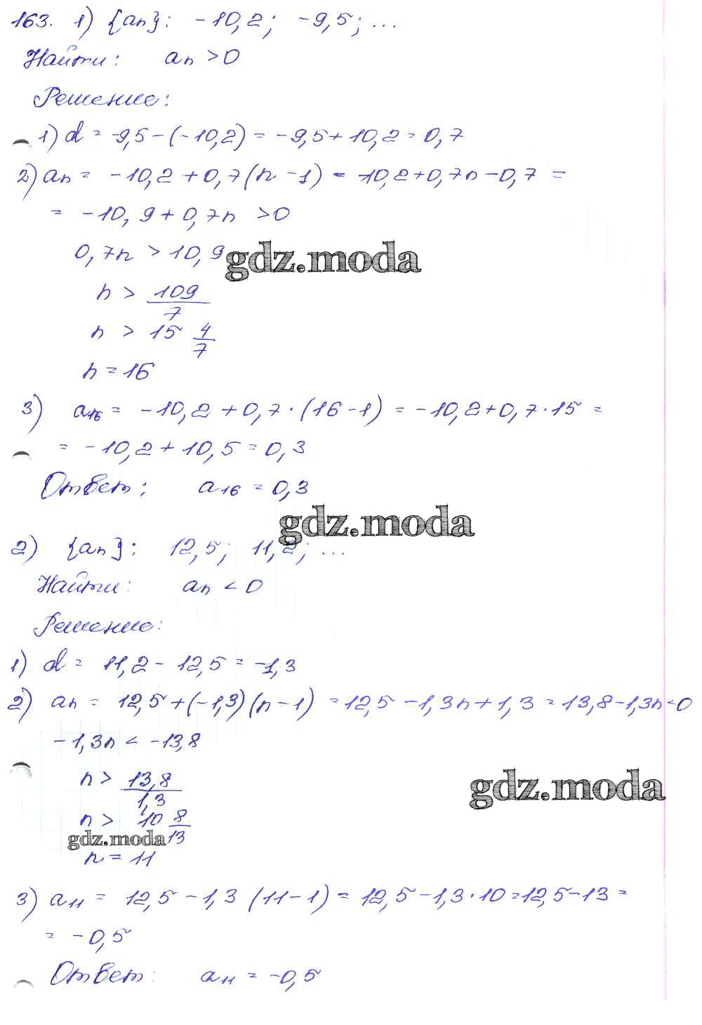 ОТВЕТ на задание № 163 Сборник заданий по Алгебре 9 класс Кузнецова