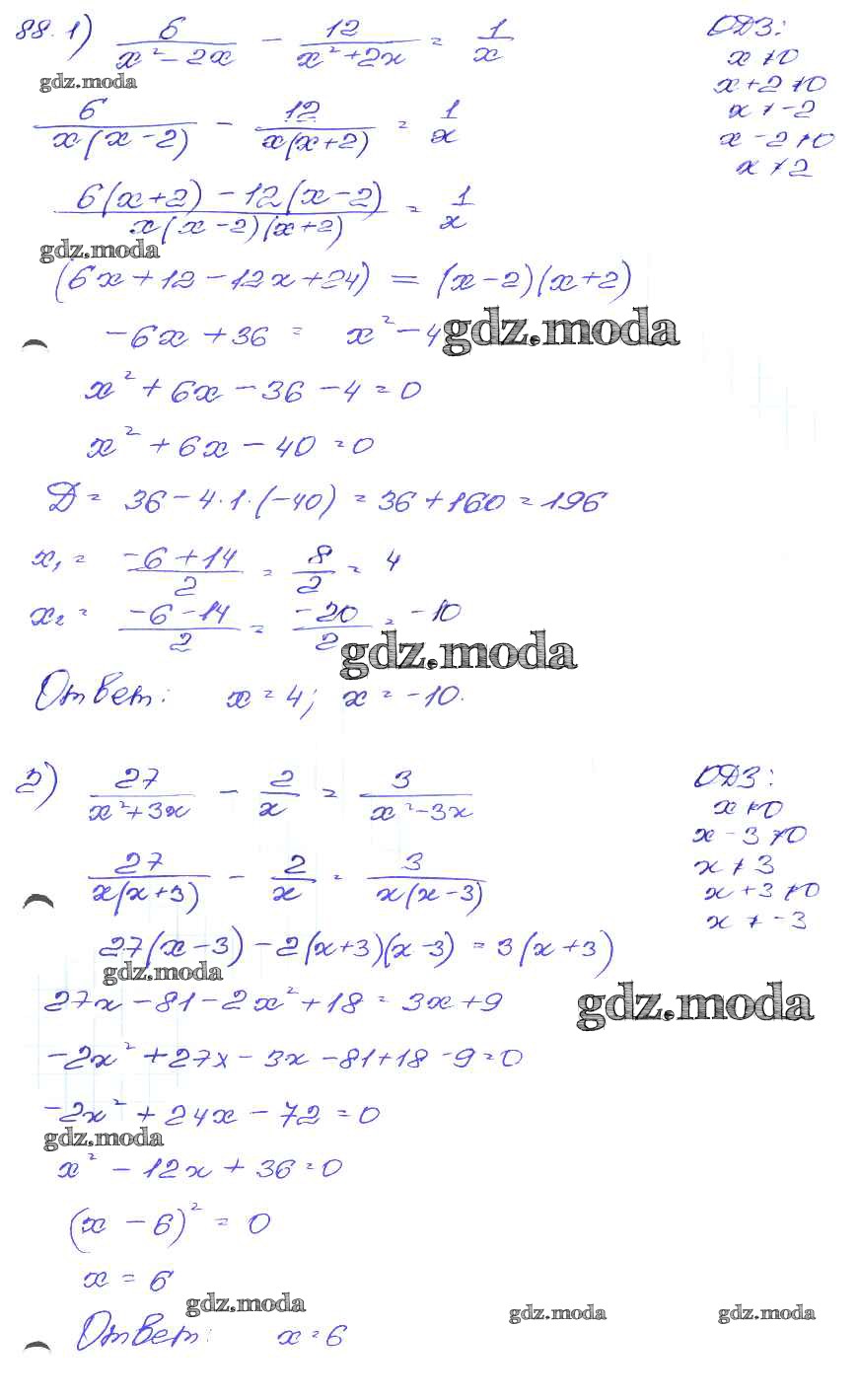 ОТВЕТ на задание № 88 Сборник заданий по Алгебре 9 класс Кузнецова