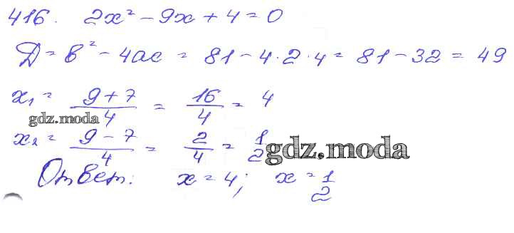ОТВЕТ на задание № 416 Сборник заданий по Алгебре 9 класс Кузнецова