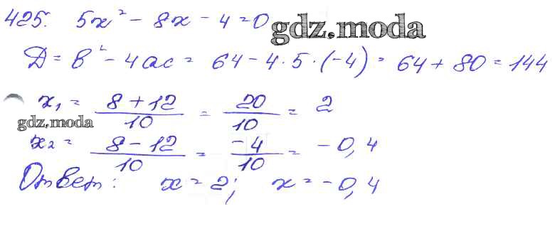 ОТВЕТ на задание № 425 Сборник заданий по Алгебре 9 класс Кузнецова