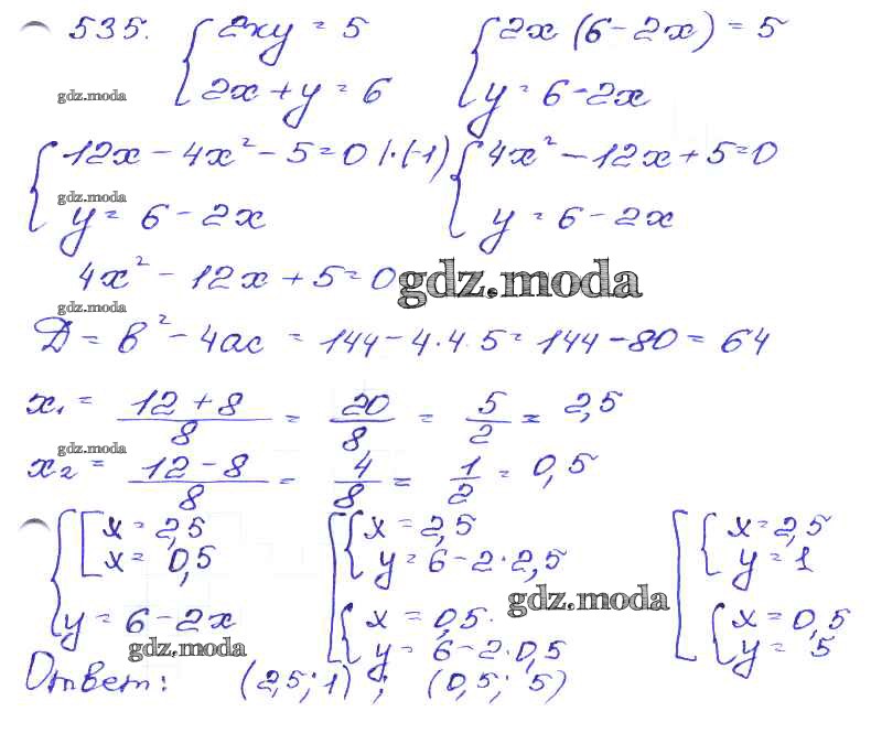 ОТВЕТ на задание № 535 Сборник заданий по Алгебре 9 класс Кузнецова