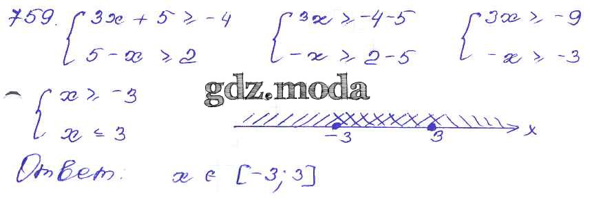 ОТВЕТ на задание № 759 Сборник заданий по Алгебре 9 класс Кузнецова