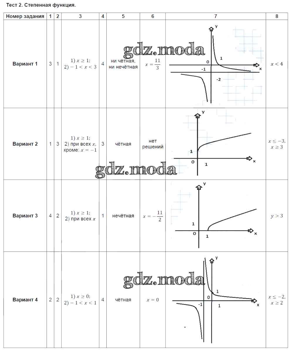 ГДЗ решение к заданию № Тест № 2. Степенная функция Алгебра 9 класс тематические тесты Ткачёва М.В. Просвещение 2014 ФГОС бесплатно на гдз.мода!