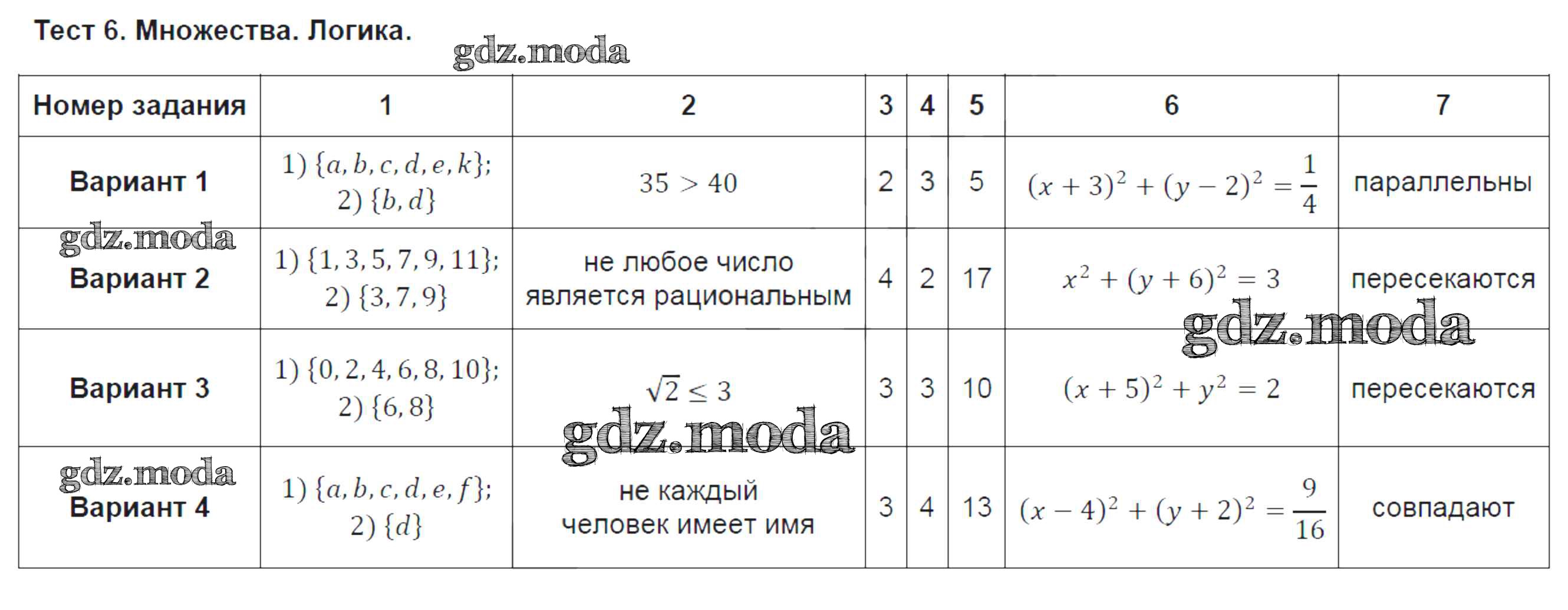 ГДЗ решение к заданию № Тест № 6. Множества. Логика Алгебра 9 класс тематические тесты Ткачёва М.В. Просвещение 2014 ФГОС бесплатно на гдз.мода!