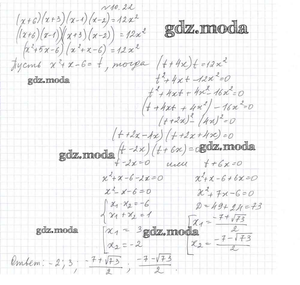 ОТВЕТ на задание № 10.22 Учебник по Алгебре 9 класс Мерзляк Алгоритм успеха Углубленный уровень