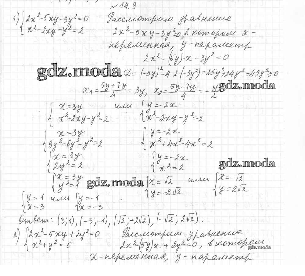 ОТВЕТ на задание № 14.9 Учебник по Алгебре 9 класс Мерзляк Алгоритм успеха Углубленный уровень