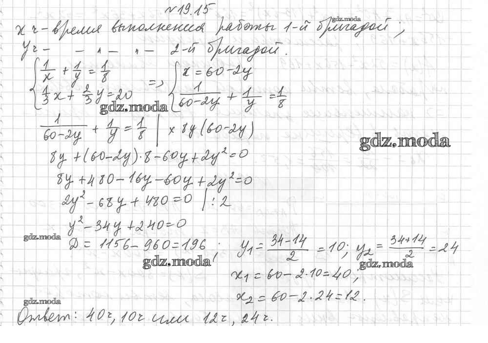 ОТВЕТ на задание № 19.15 Учебник по Алгебре 9 класс Мерзляк Алгоритм успеха Углубленный уровень