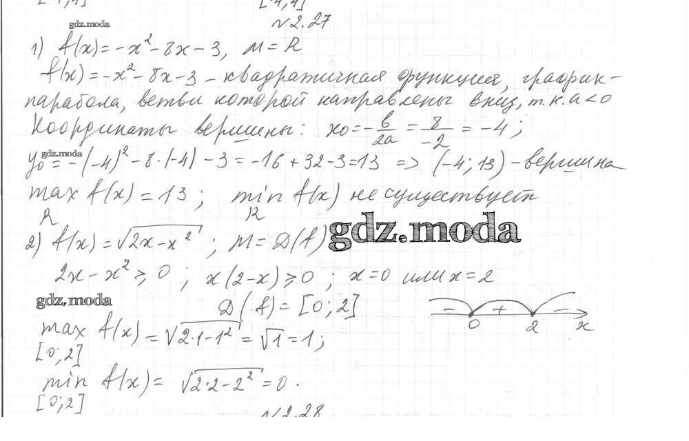 ОТВЕТ на задание № 2.27 Учебник по Алгебре 9 класс Мерзляк Алгоритм успеха Углубленный уровень