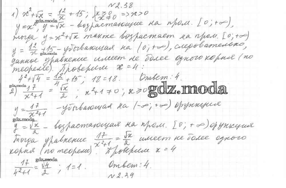 ОТВЕТ на задание № 2.38 Учебник по Алгебре 9 класс Мерзляк Алгоритм успеха Углубленный уровень
