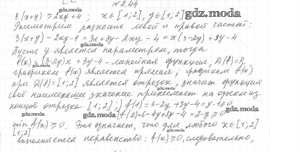 ОТВЕТ на задание № 2.44 Учебник по Алгебре 9 класс Мерзляк Алгоритм успеха Углубленный уровень