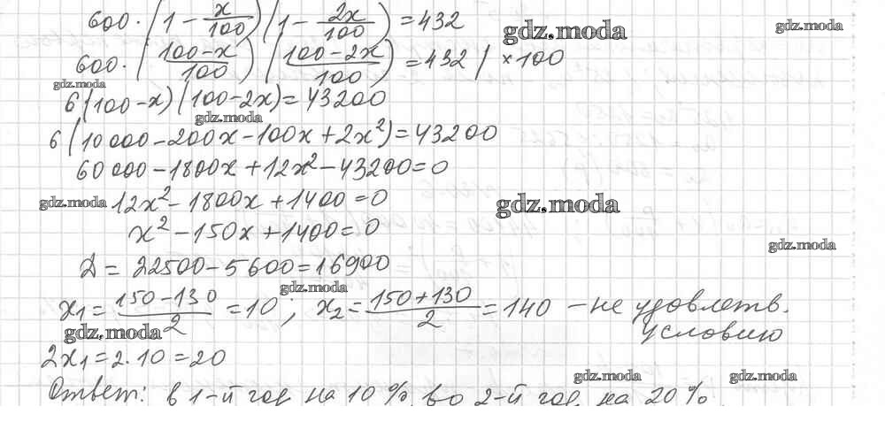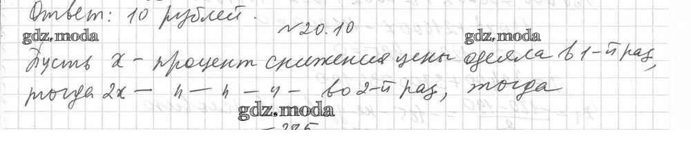 ОТВЕТ на задание № 20.10 Учебник по Алгебре 9 класс Мерзляк Алгоритм успеха Углубленный уровень