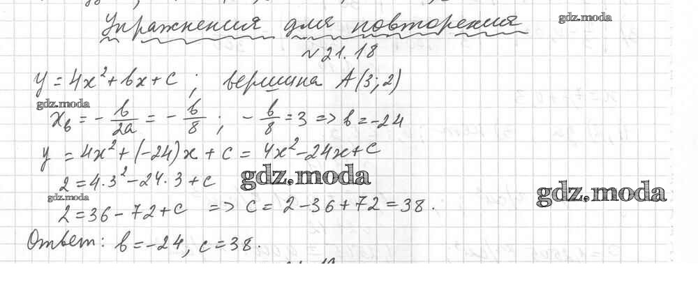ОТВЕТ на задание № 21.18 Учебник по Алгебре 9 класс Мерзляк Алгоритм успеха Углубленный уровень