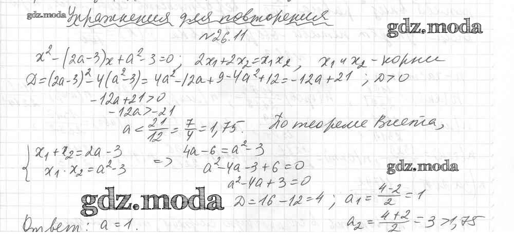 ГДЗ решение к заданию № 26.11 Алгебра 9 класс Углубленный уровень Мерзляк А.Г. Вентана-граф 2020 Углубленный уровень ФГОС бесплатно на гдз.мода!