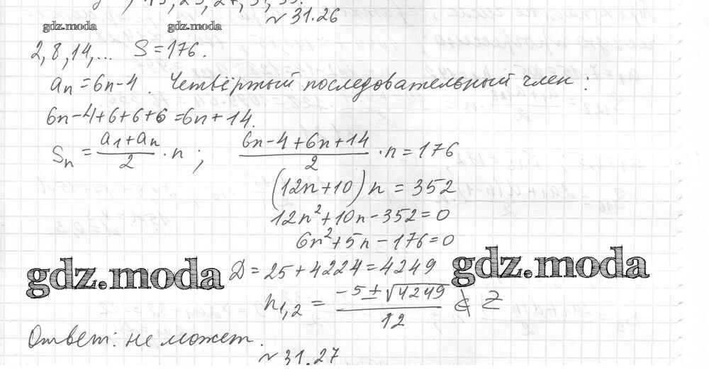 ОТВЕТ на задание № 31.26 Учебник по Алгебре 9 класс Мерзляк Алгоритм успеха Углубленный уровень