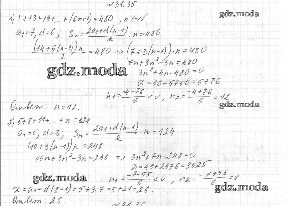 ОТВЕТ на задание № 31.35 Учебник по Алгебре 9 класс Мерзляк Алгоритм успеха Углубленный уровень