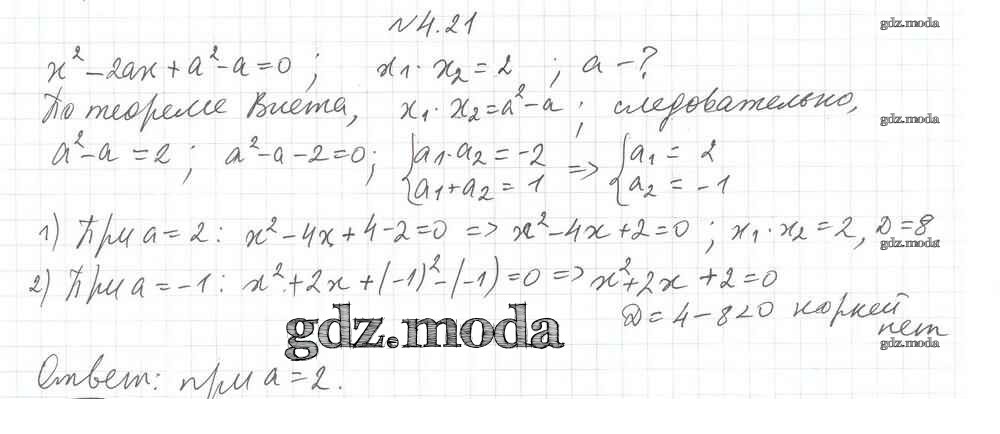 ОТВЕТ на задание № 4.21 Учебник по Алгебре 9 класс Мерзляк Алгоритм успеха Углубленный уровень