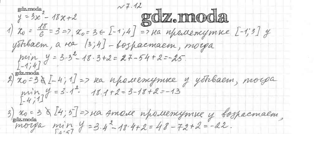 ОТВЕТ на задание № 7.12 Учебник по Алгебре 9 класс Мерзляк Алгоритм успеха Углубленный уровень