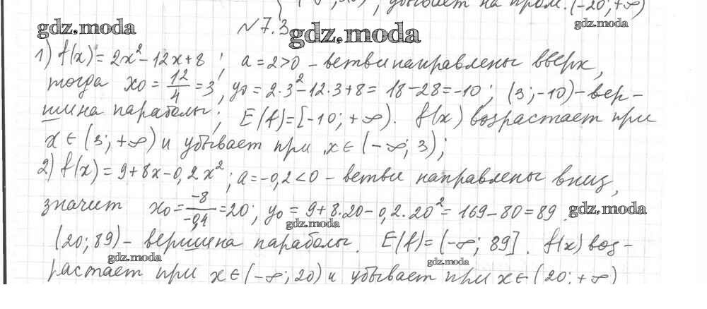 ОТВЕТ на задание № 7.3 Учебник по Алгебре 9 класс Мерзляк Алгоритм успеха Углубленный уровень