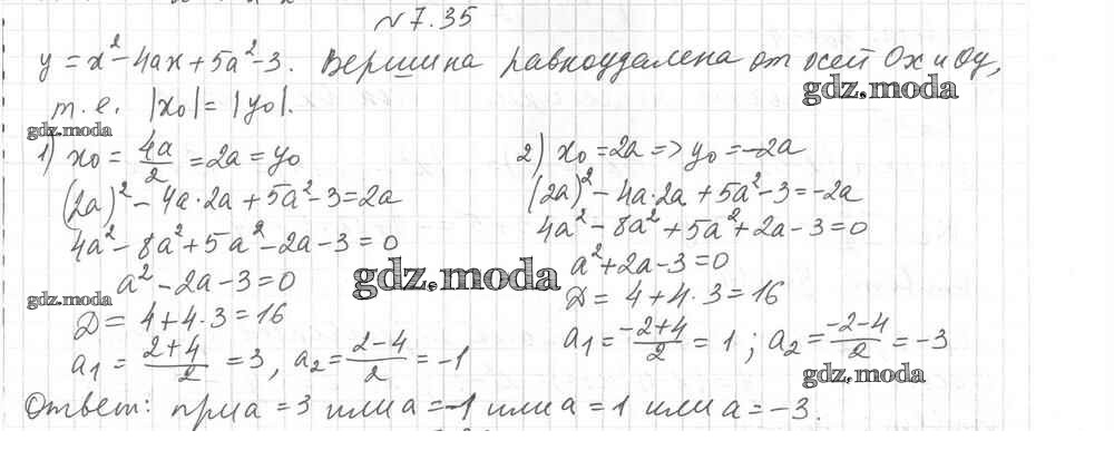ОТВЕТ на задание № 7.35 Учебник по Алгебре 9 класс Мерзляк Алгоритм успеха Углубленный уровень
