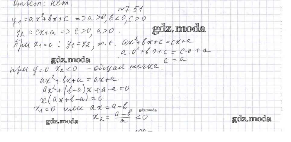 ОТВЕТ на задание № 7.51 Учебник по Алгебре 9 класс Мерзляк Алгоритм успеха Углубленный уровень