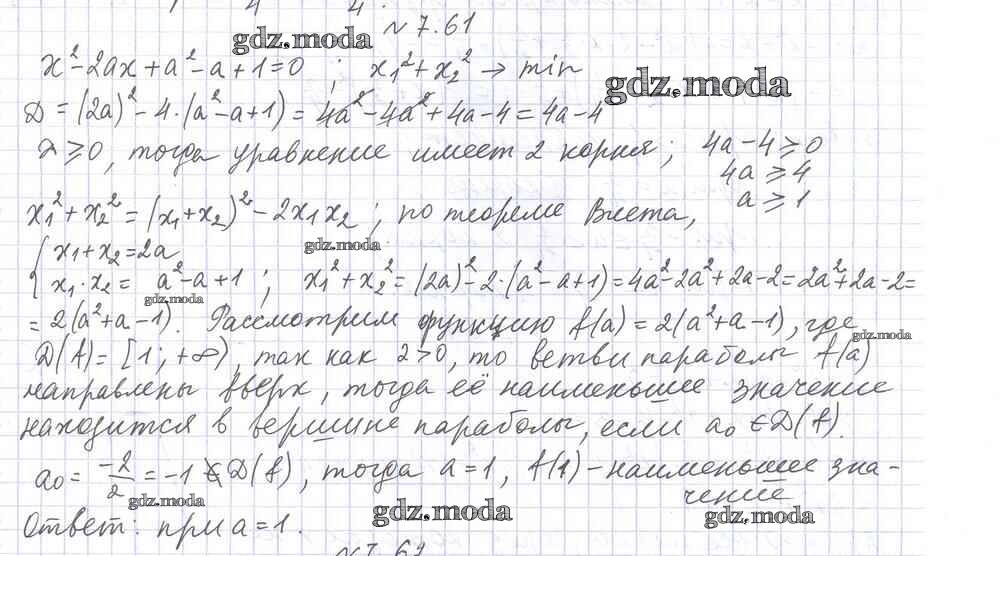 ОТВЕТ на задание № 7.61 Учебник по Алгебре 9 класс Мерзляк Алгоритм успеха Углубленный уровень