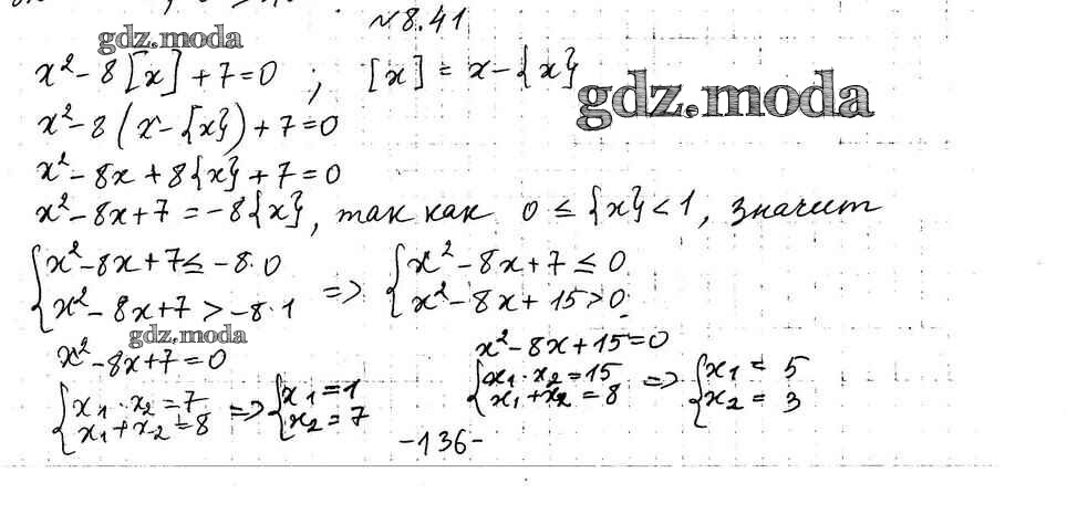 ОТВЕТ на задание № 8.41 Учебник по Алгебре 9 класс Мерзляк Алгоритм успеха Углубленный уровень