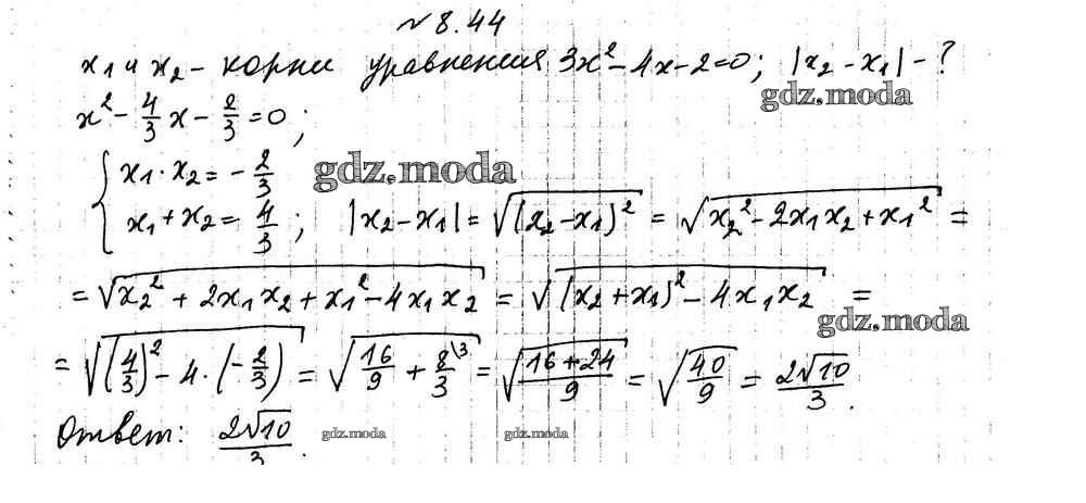 ОТВЕТ на задание № 8.44 Учебник по Алгебре 9 класс Мерзляк Алгоритм успеха Углубленный уровень