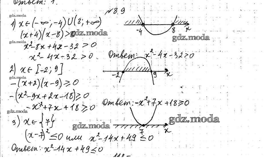 ОТВЕТ на задание № 8.9 Учебник по Алгебре 9 класс Мерзляк Алгоритм успеха Углубленный уровень