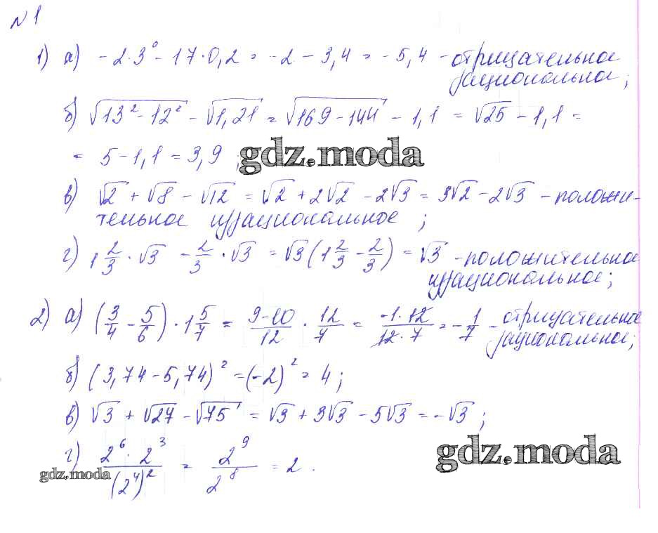 ОТВЕТ на задание № 1 Дидактические материалы по Алгебре 9 класс Евстафьева