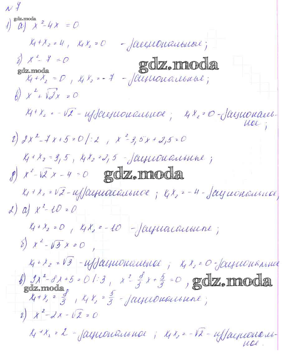 ГДЗ решение к заданию № 7 Алгебра 9 класс Дидактические материалы Евстафьева Л.П. Просвещение 2017 ФГОС бесплатно на гдз.мода!