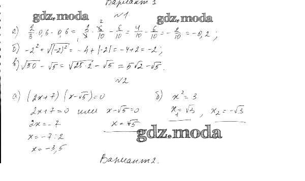 ГДЗ решение к заданию № Вариант 1 Алгебра 9 класс Дидактические материалы Евстафьева Л.П. Просвещение 2017 ФГОС бесплатно на гдз.мода!