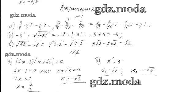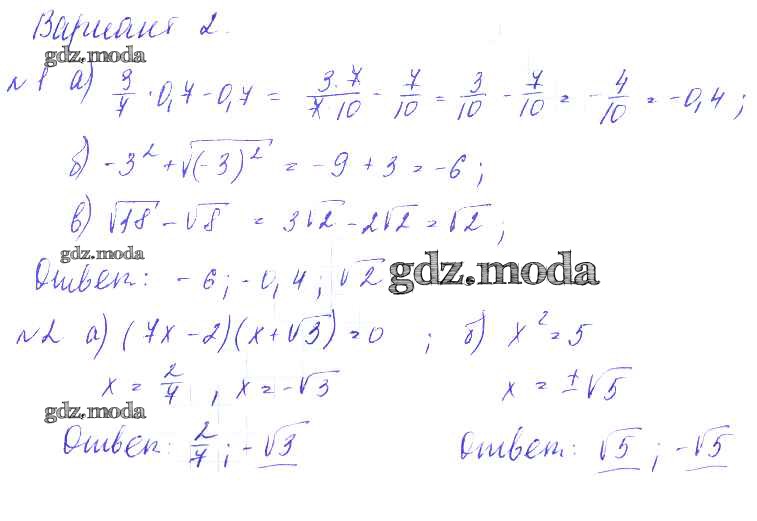 ГДЗ решение к заданию № Вариант 2 Алгебра 9 класс Дидактические материалы Евстафьева Л.П. Просвещение 2017 ФГОС бесплатно на гдз.мода!