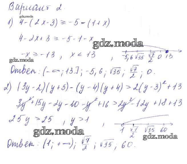 ГДЗ решение к заданию № Вариант 2 Алгебра 9 класс Дидактические материалы Евстафьева Л.П. Просвещение 2017 ФГОС бесплатно на гдз.мода!