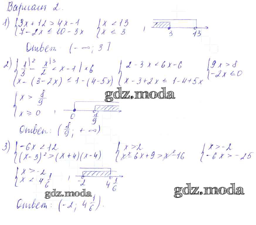 ГДЗ решение к заданию № Вариант 2 Алгебра 9 класс Дидактические материалы Евстафьева Л.П. Просвещение 2017 ФГОС бесплатно на гдз.мода!