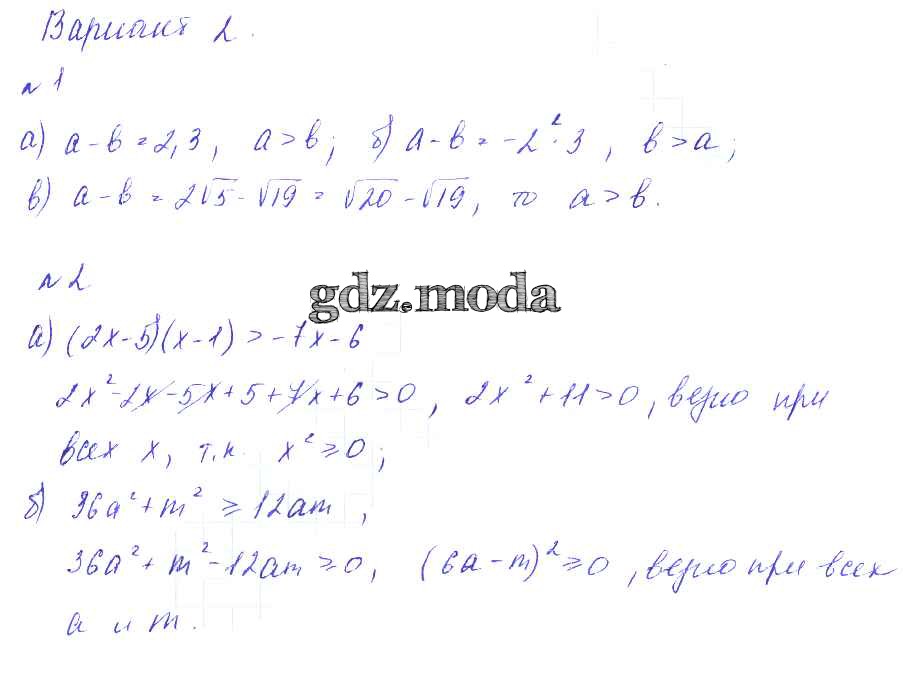 ГДЗ решение к заданию № Вариант 2 Алгебра 9 класс Дидактические материалы Евстафьева Л.П. Просвещение 2017 ФГОС бесплатно на гдз.мода!