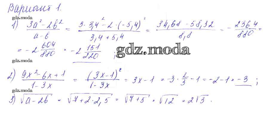 ГДЗ решение к заданию № Вариант 1 Алгебра 9 класс Дидактические материалы Евстафьева Л.П. Просвещение 2017 ФГОС бесплатно на гдз.мода!