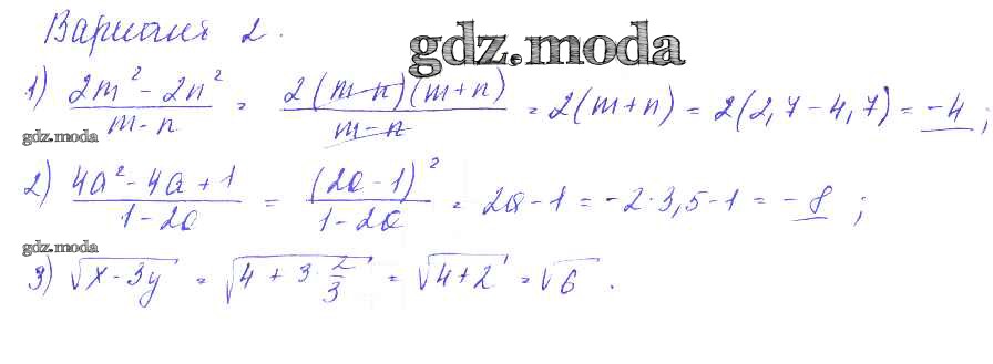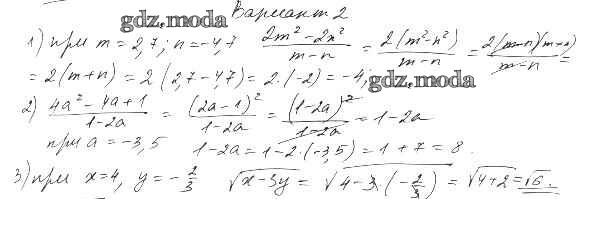ГДЗ решение к заданию № Вариант 2 Алгебра 9 класс Дидактические материалы Евстафьева Л.П. Просвещение 2017 ФГОС бесплатно на гдз.мода!