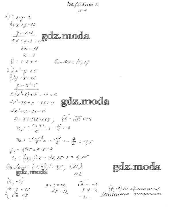 ОТВЕТ на задание № Вариант 2 Дидактические материалы по Алгебре 9 класс Евстафьева