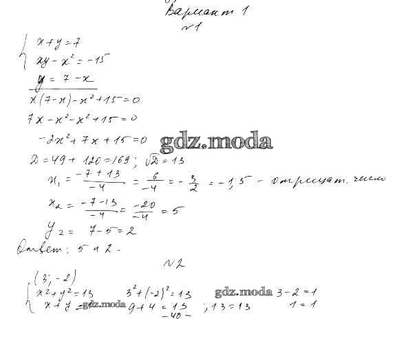 ГДЗ решение к заданию № Вариант 1 Алгебра 9 класс Дидактические материалы Евстафьева Л.П. Просвещение 2017 ФГОС бесплатно на гдз.мода!