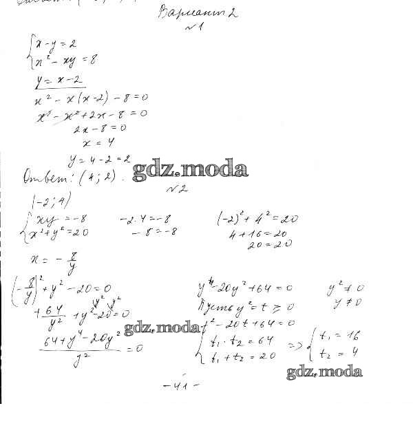 ГДЗ решение к заданию № Вариант 2 Алгебра 9 класс Дидактические материалы Евстафьева Л.П. Просвещение 2017 ФГОС бесплатно на гдз.мода!