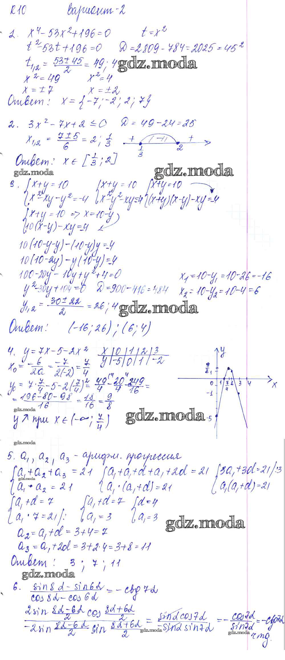 ОТВЕТ на задание № Вариант №2 Контрольные и самостоятельные работы по Алгебре 9 класс Журавлев УМК