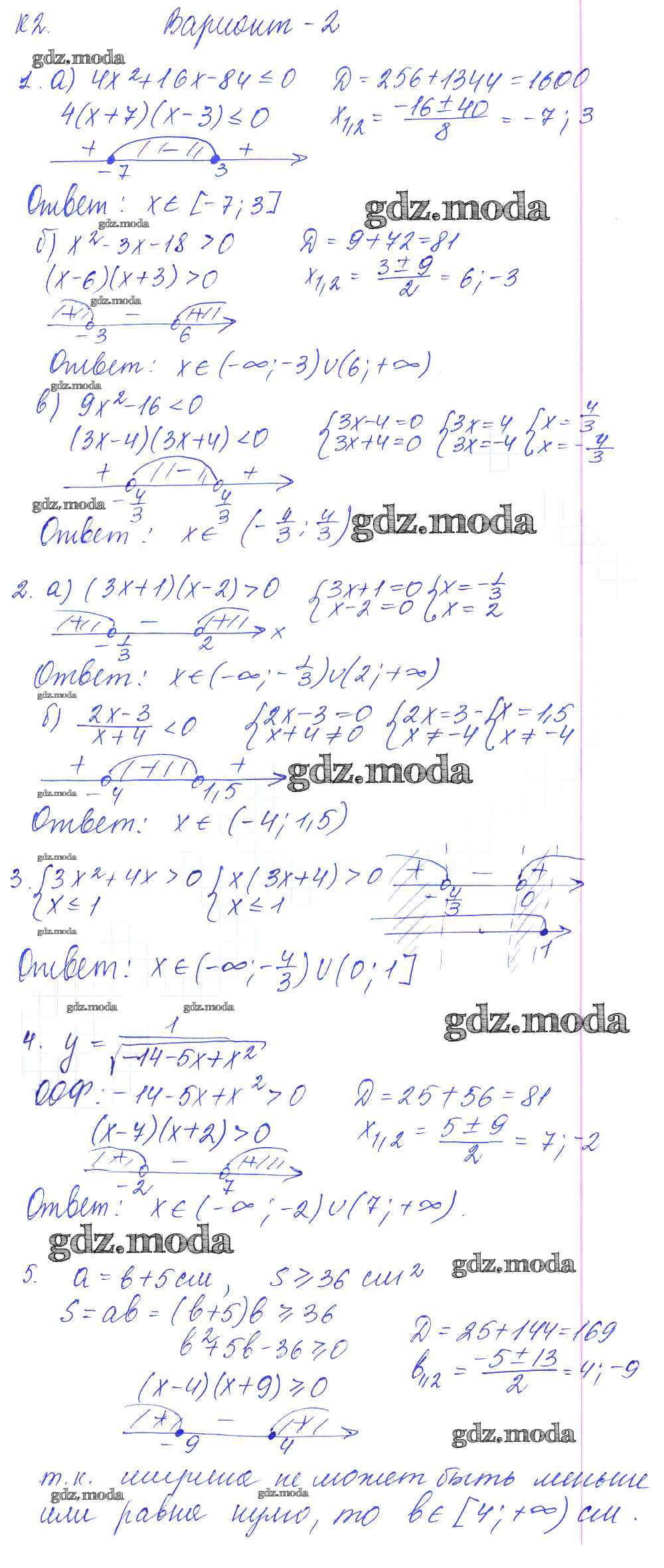 ОТВЕТ на задание № Вариант №2 Контрольные и самостоятельные работы по Алгебре 9 класс Журавлев УМК