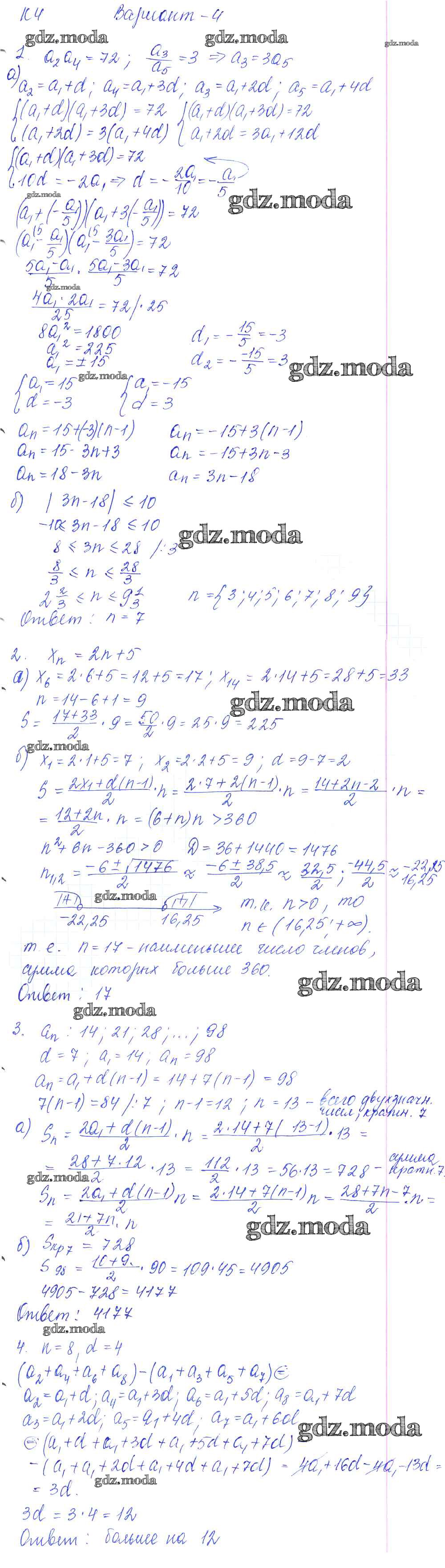 ОТВЕТ на задание № Вариант №4 Контрольные и самостоятельные работы по Алгебре 9 класс Журавлев УМК