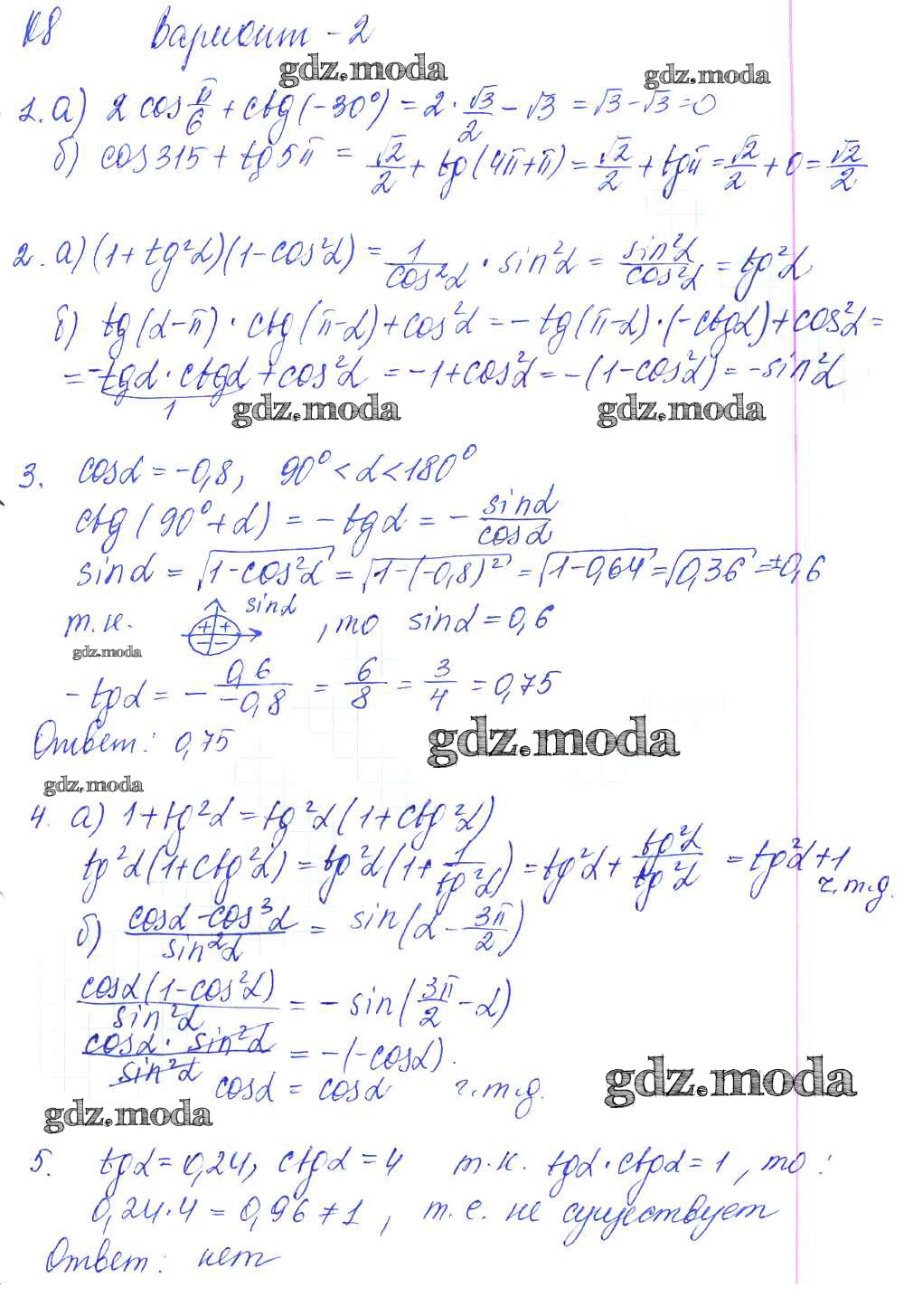 ОТВЕТ на задание № Вариант №2 Контрольные и самостоятельные работы по Алгебре 9 класс Журавлев УМК