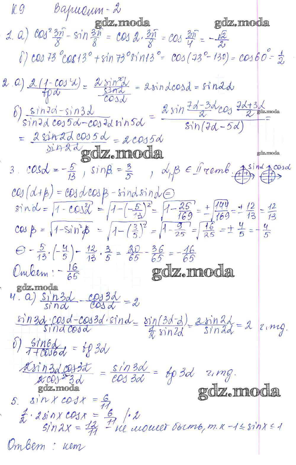 ОТВЕТ на задание № Вариант №2 Контрольные и самостоятельные работы по Алгебре 9 класс Журавлев УМК