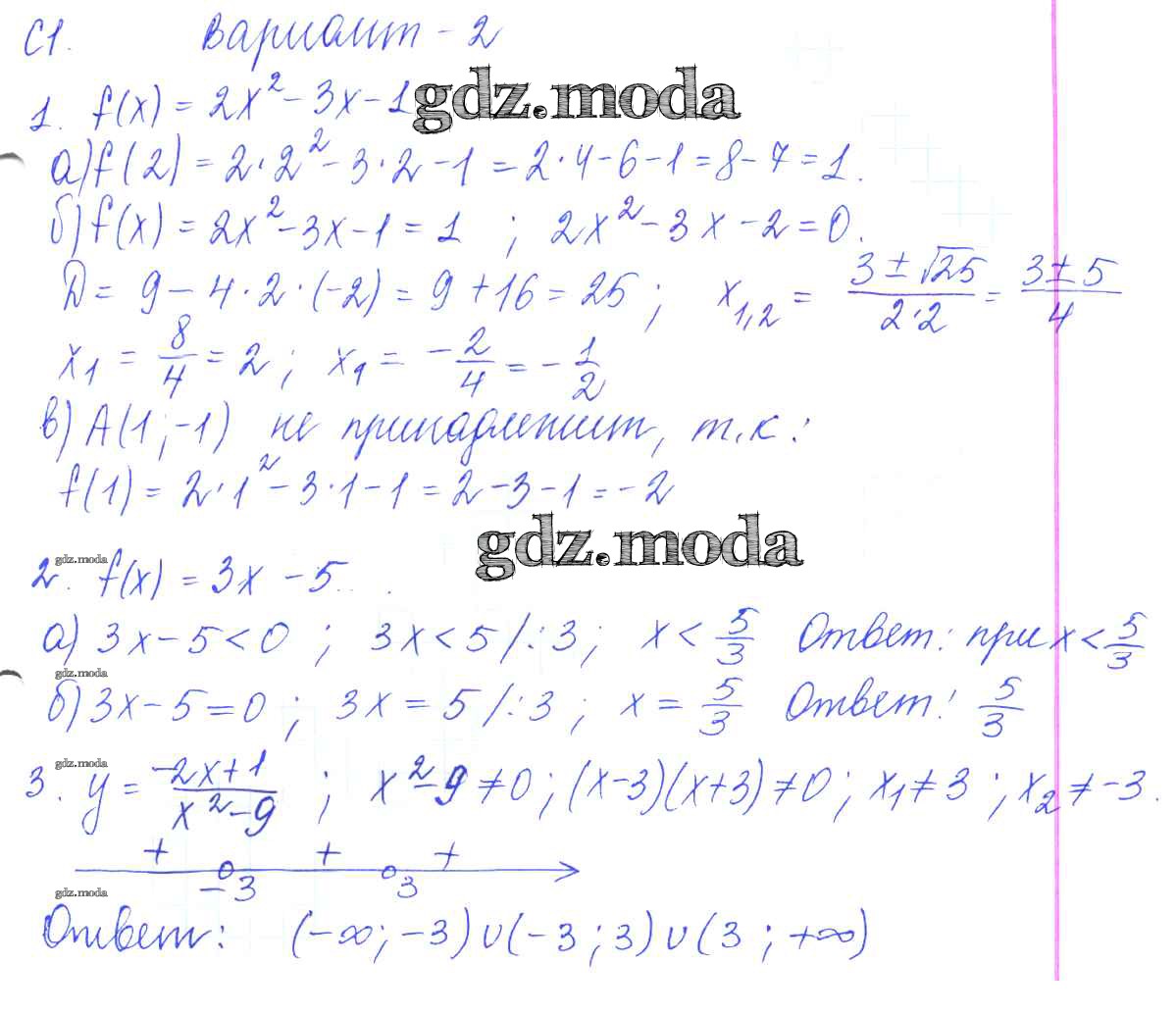ОТВЕТ на задание № Вариант №2 Контрольные и самостоятельные работы по Алгебре 9 класс Журавлев УМК